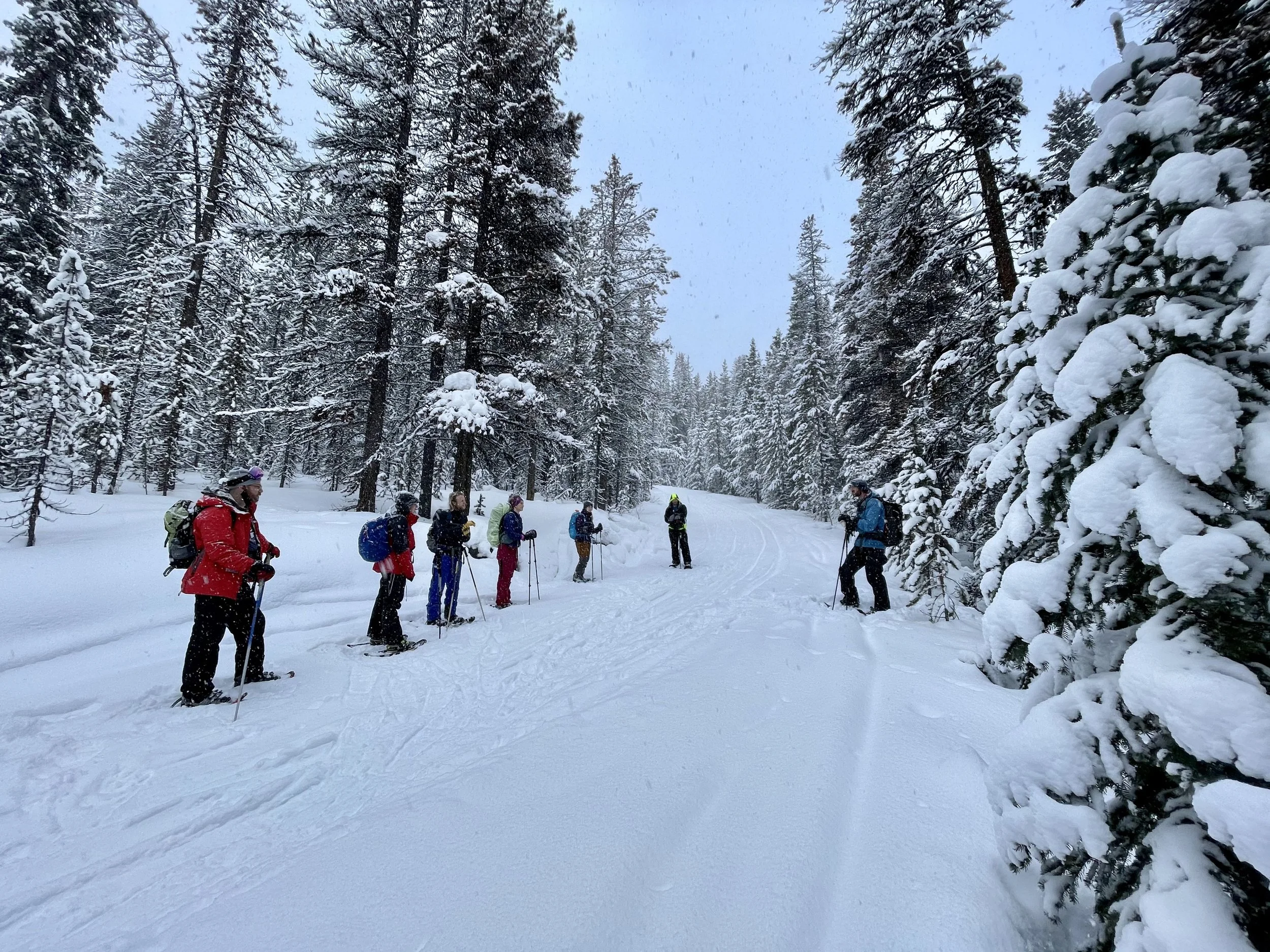 Snowshoe through a beautiful valley nestled between two big mountain ranges. There are several lakes along the way and plenty of opportunity to soak in the spectacular views. We gain 250m over the course of 12 kms, making it a relatively flat trail to reach Jacques Lake Cabin.